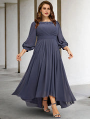 Wholesale A-Line Mother of the Bride Dresses Plus Size Hide Belly Curve Elegant Dress Formal Asymmetrical 3/4 Length Sleeve Jewel Neck Chiffon with Pleats Appliques