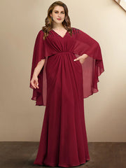 Wholesale A-Line Plus Size Curve Mother of the Bride Dresses Elegant Dress Formal Floor Length Sleeveless V Neck Chiffon with Pleats Beading - US 2 / UK 6 / EU 32