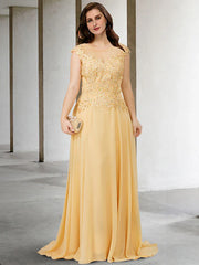 Wholesale A-Line Plus Size Curve Mother of the Bride Dresses Elegant Dress Formal Sweep / Brush Train Sleeveless Jewel Neck Chiffon with Beading Appliques