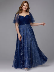 Wholesale A-Line Plus Size Dress Prom Formal Evening Floor Length Short Sleeve Sweetheart Tulle Lace-up with Beading Pattern / Print