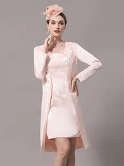 Wholesale Mother of the Bride Dress Plus Size Elegant Scoop Neck Knee Length Satin Sleeveless with Beading Appliques - US 2 / UK 6 / EU 32