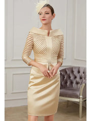 Wholesale Mother of the Bride Dress Plus Size Off Shoulder Knee Length Polyester 3/4 Length Sleeve with Ruching - US 2 / UK 6 / EU 32