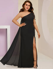 Wholesale Mother of the Bride Dresses Plus Size Curve Hide Belly Wedding Guest Party Sexy One Shoulder Floor Length Chiffon Sleeveless with Beading Split Front - US 2 / UK 6 / EU 32