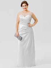 Wholesale Sheath / Column Mother of the Bride Dress Classic & Timeless Elegant & Luxurious Plus Size Jewel Neck Floor Length Satin Sleeveless No with Pleats Crystals - US 2 / UK 6 / EU 32