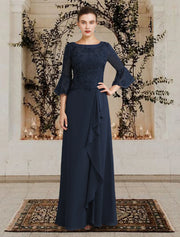 Wholesale Sheath / Column Mother of the Bride Dress Plus Size Elegant Jewel Neck Floor Length Chiffon Lace Half Sleeve with Sequin Appliques - US 2 / UK 6 / EU 32