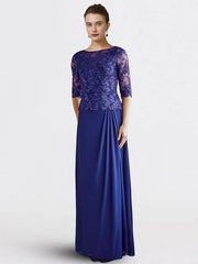 Wholesale Sheath / Column Mother of the Bride Dress Plus Size Elegant Jewel Neck Floor Length Chiffon Lace Half Sleeve with Sequin Appliques - US 2 / UK 6 / EU 32