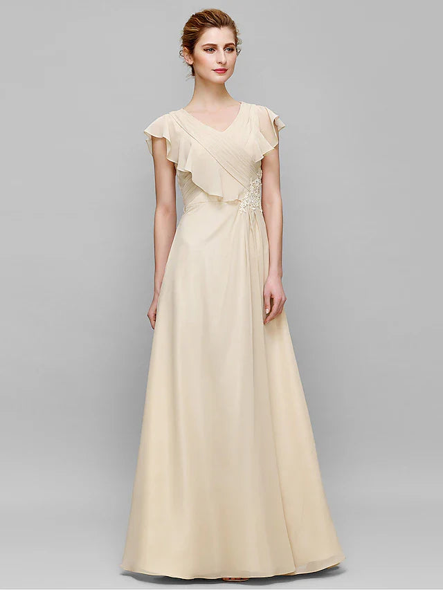 Wholesale Sheath / Column Mother of the Bride Dress Plus Size Elegant V Neck Floor Length Chiffon Sleeveless with Criss Cross Appliques - As picture 1 / US 2 / UK 6 / EU 32