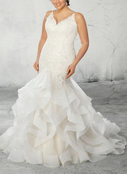 Wholesale Trumpet/Mermaid V-Neck Plus Size Lace Wedding Dress With Applique & Ruffles