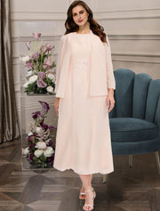 Wholesale Two Piece A-Line Mother of the Bride Dresses Plus Size Hide Belly Curve Elegant Dress Formal Ankle Length Half Sleeve Jewel Neck Chiffon with Beading - US 2 / UK 6 / EU 32