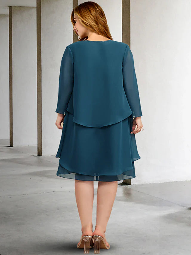 Wholesale Two Piece A-Line Plus Size Curve Mother of the Bride Dresses Elegant Dress Formal Knee Length Sleeveless V Neck Chiffon with Ruffles - US 2 / UK 6 / EU 32