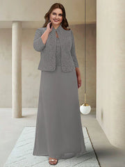 Wholesale Two Piece Sheath / Column Mother of the Bride Dress Plus Size Elegant Jewel Neck Ankle Length Chiffon Lace 3/4 Length Sleeve Wrap Included with Appliques