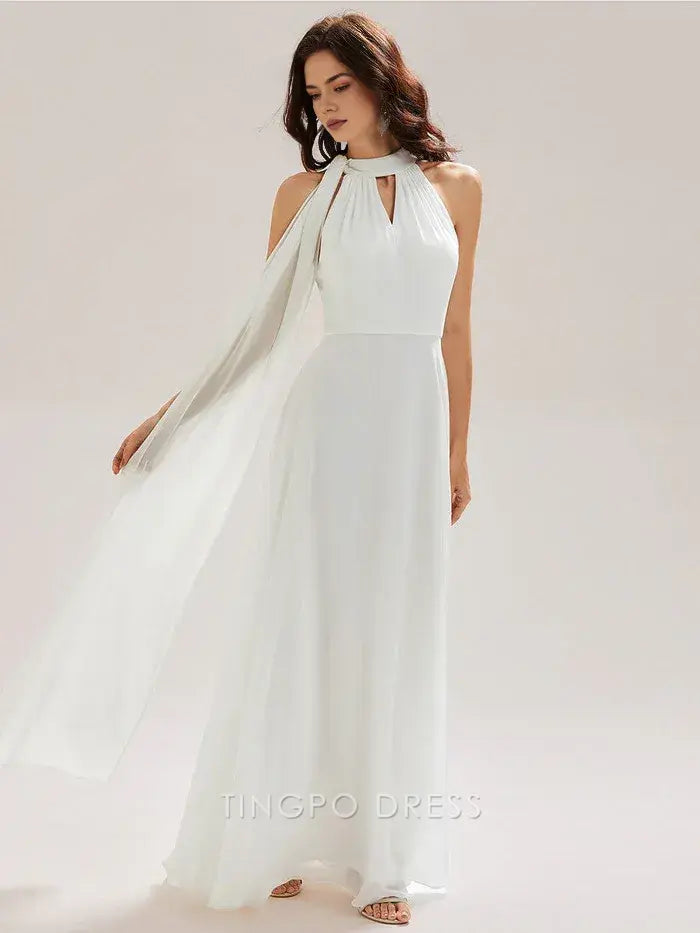 Elegant A-Line Halter Neck Maxi Dress with Flowing Drape Detail Prom Dress