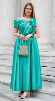 One - Shoulder Bow Detail Satin prom dress: Suitable for: proms, formal dinners, black-tie weddings, and upscale parties.