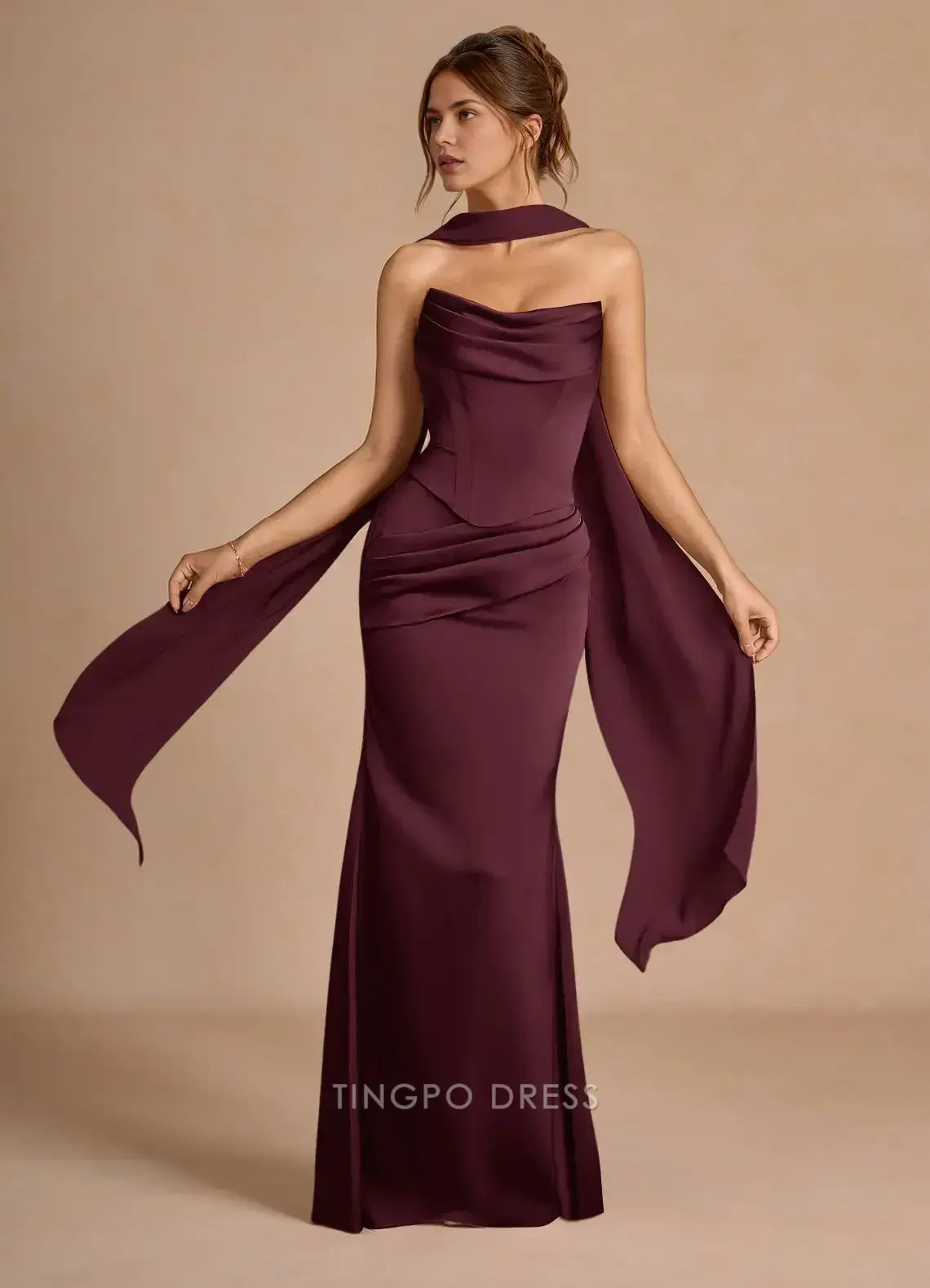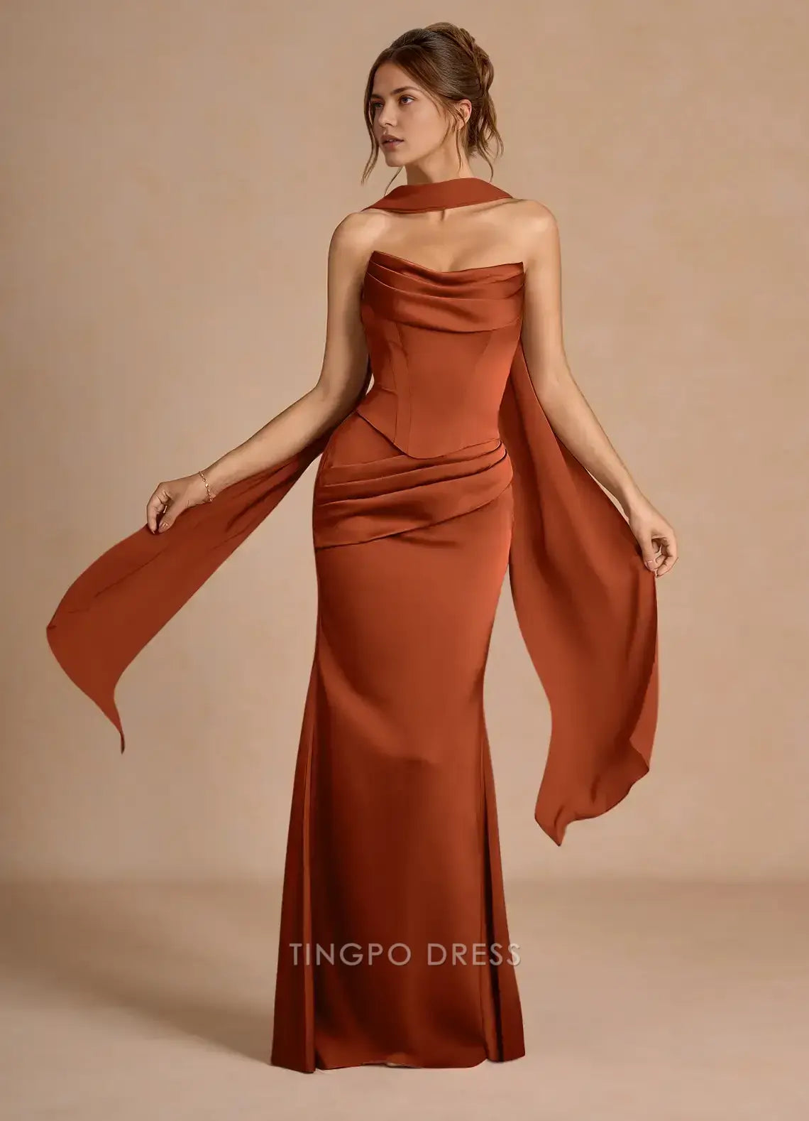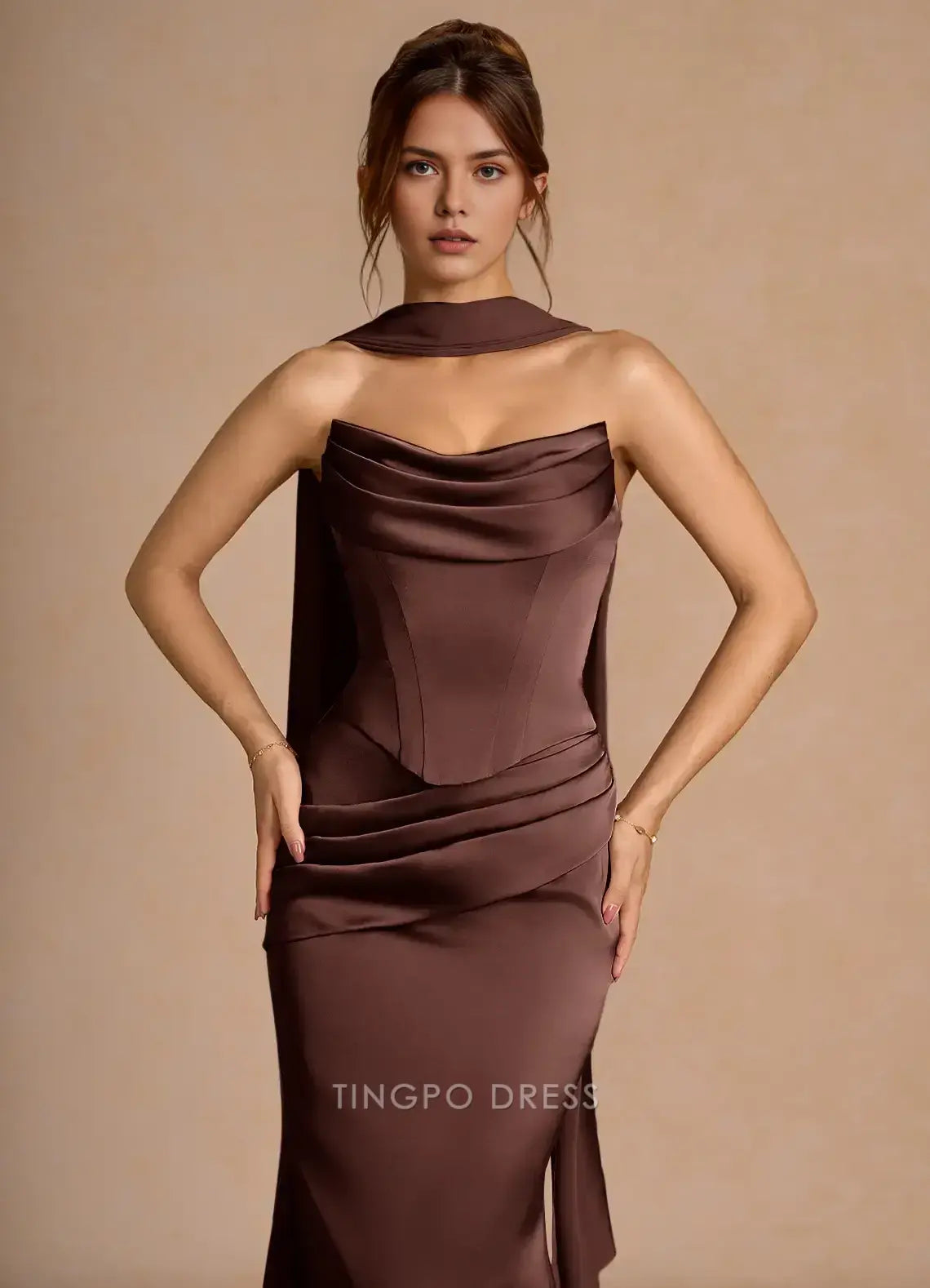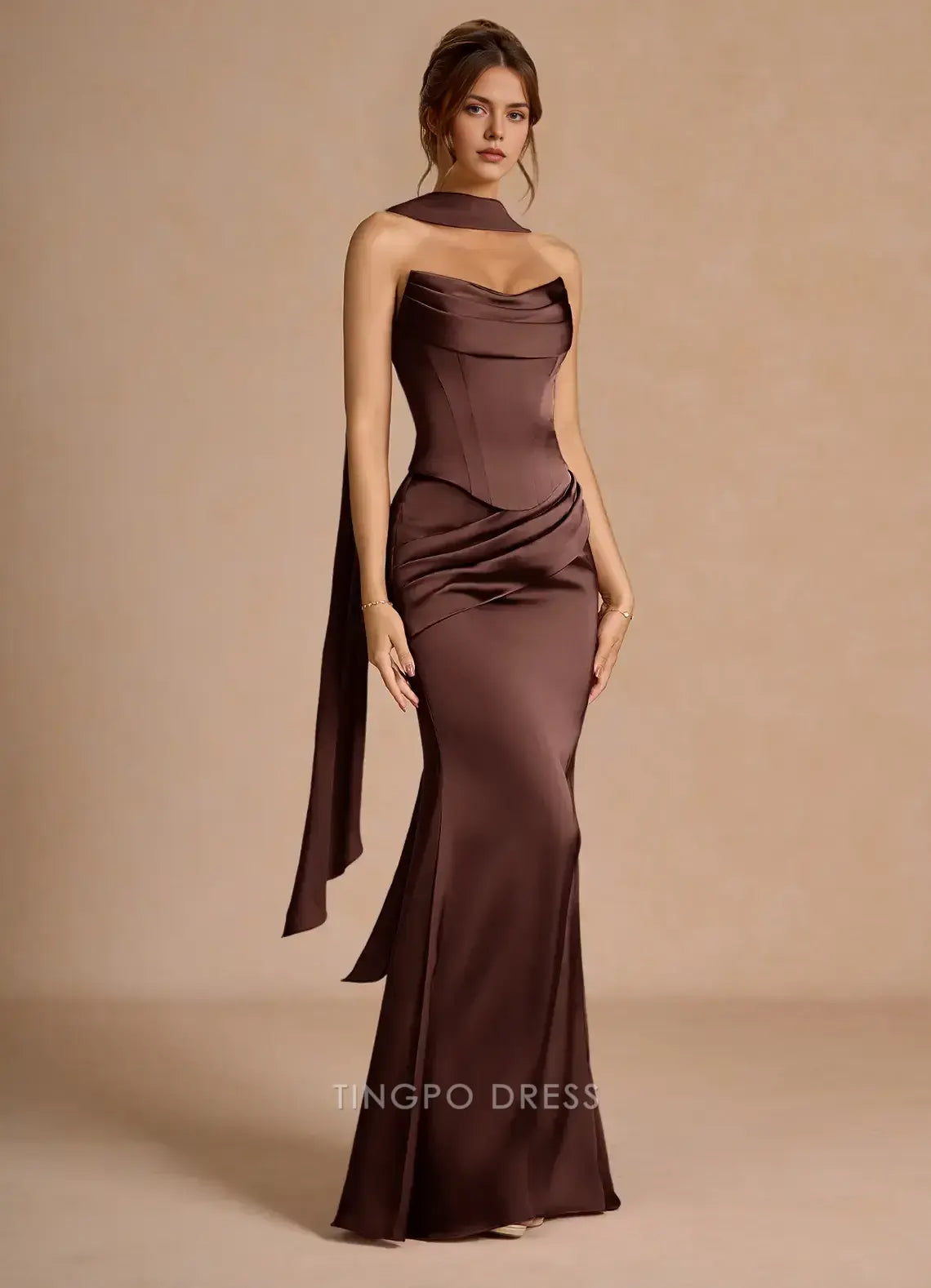 Step into elegance with Tingpo's cowl neck satin mermaid maxi dress. The cowl neck design highlights your neckline beautifully, while the satin fabric lends a luxurious feel. The mermaid silhouette creates a stunning and curvy appearance, and the detachable scarf adds a touch of versatility and charm. The lace - up back enhances allure, perfect for formal events or special occasions.