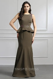 Elegant Embellished Peplum Mermaid Maxi Dress with Open Back Skirt Set Prom Dress