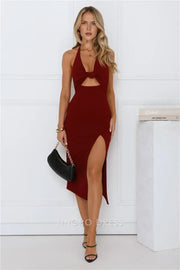 Elegant Halter Neck Cut - Out Midi Dress with Side Slit Prom Dress