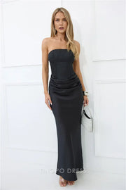Tingpo's elegant mermaid trumpet dress features a strapless, sleeveless design that highlights the shoulders and neckline with refined simplicity. Crafted for a flattering fit, it contours the body before gracefully flaring out at the floor length, creating a timeless silhouette. The discreet back zip ensures easy wear while maintaining a sleek profile. Ideal for prom or formal occasions, this dress combines classic elegance with sophisticated style.