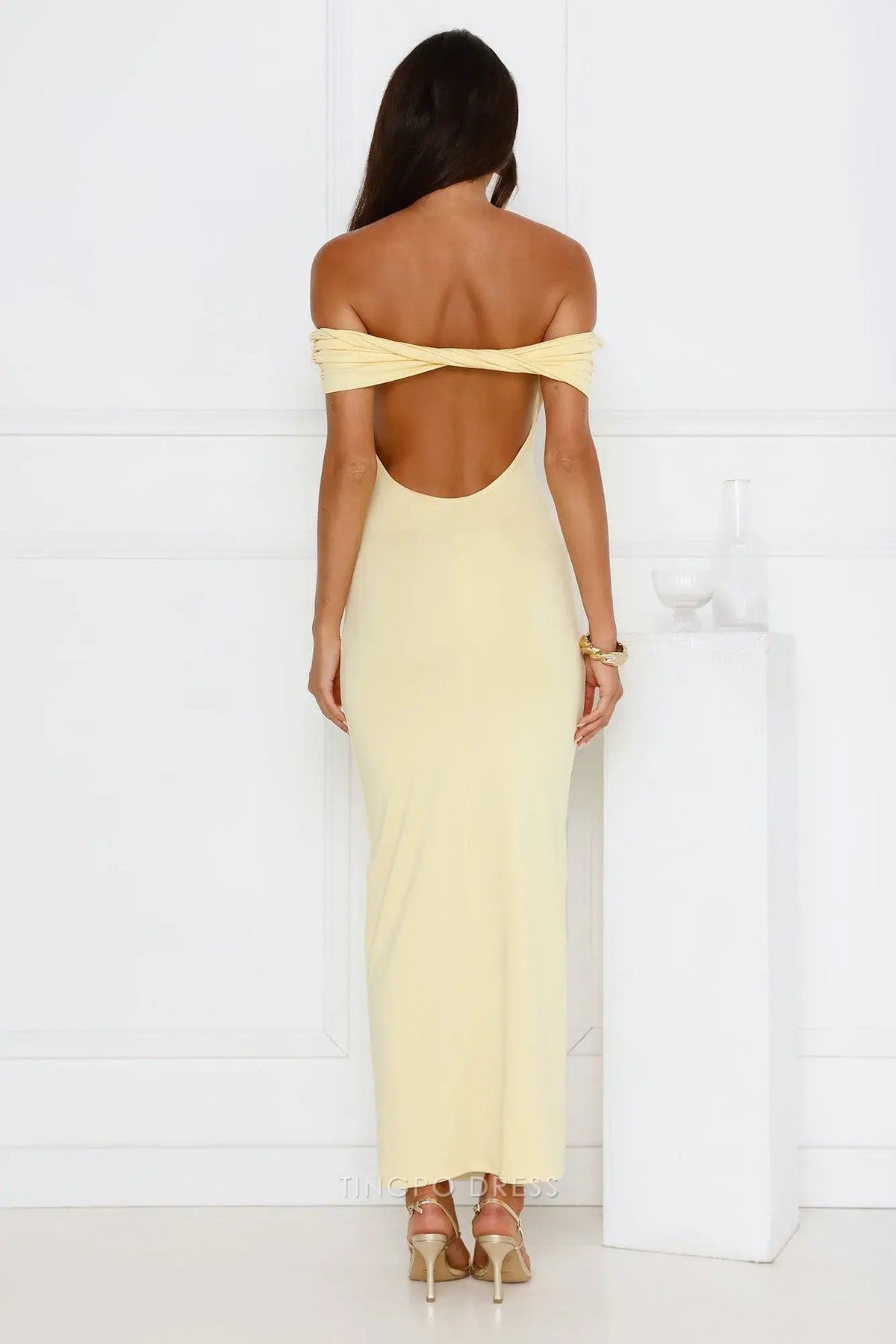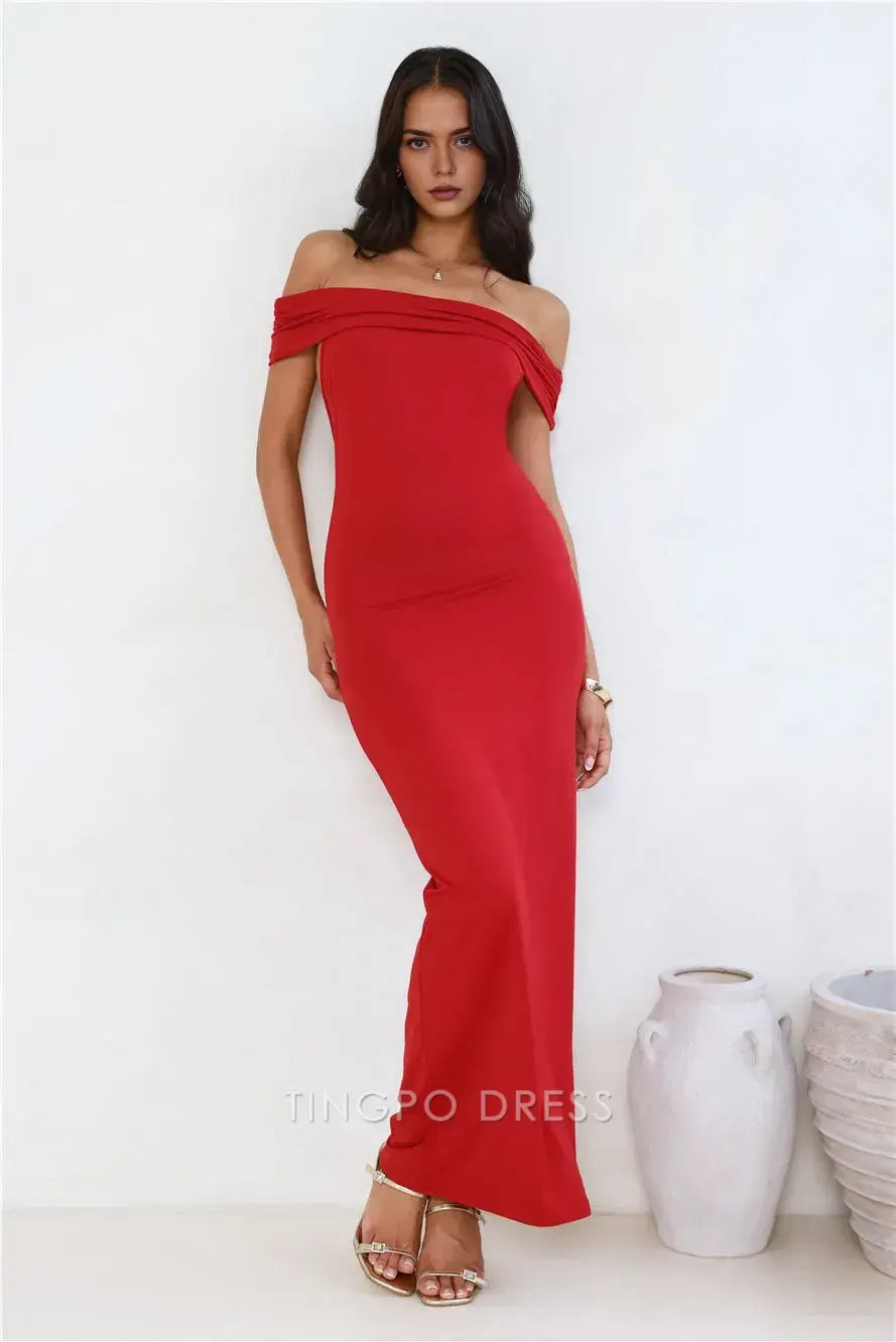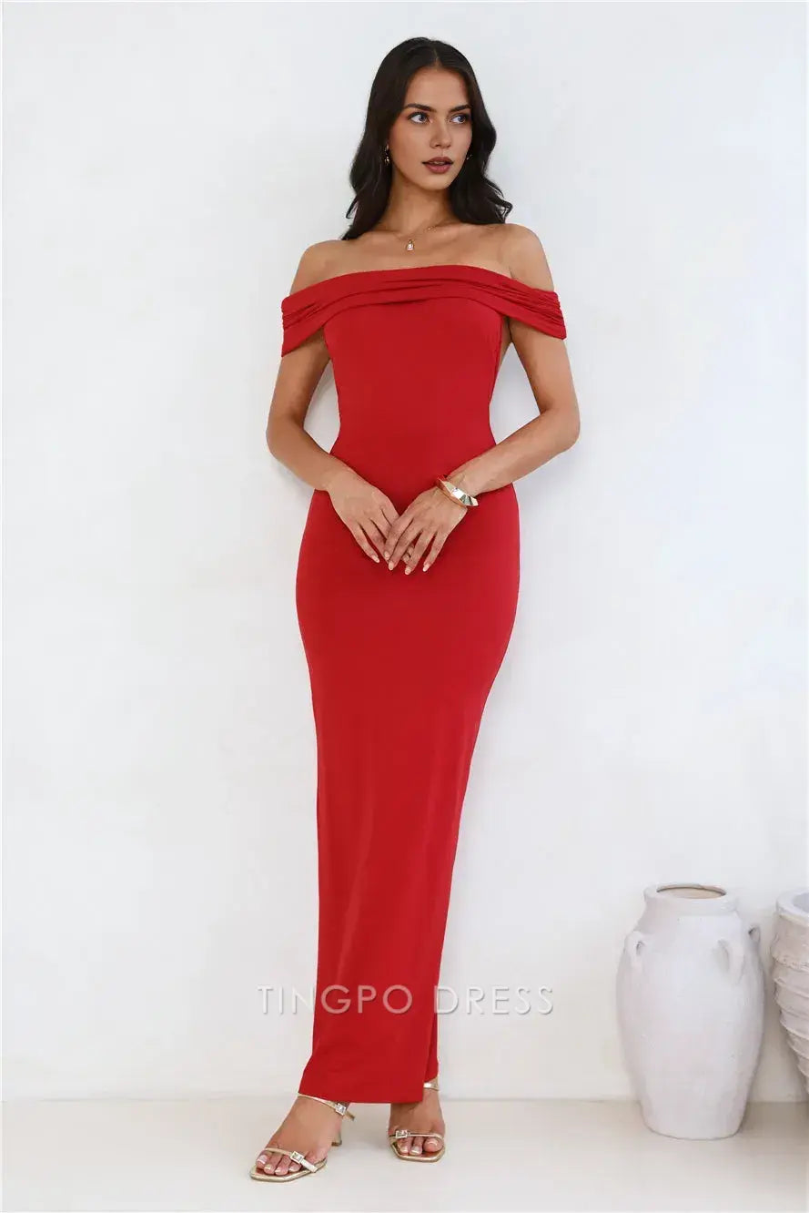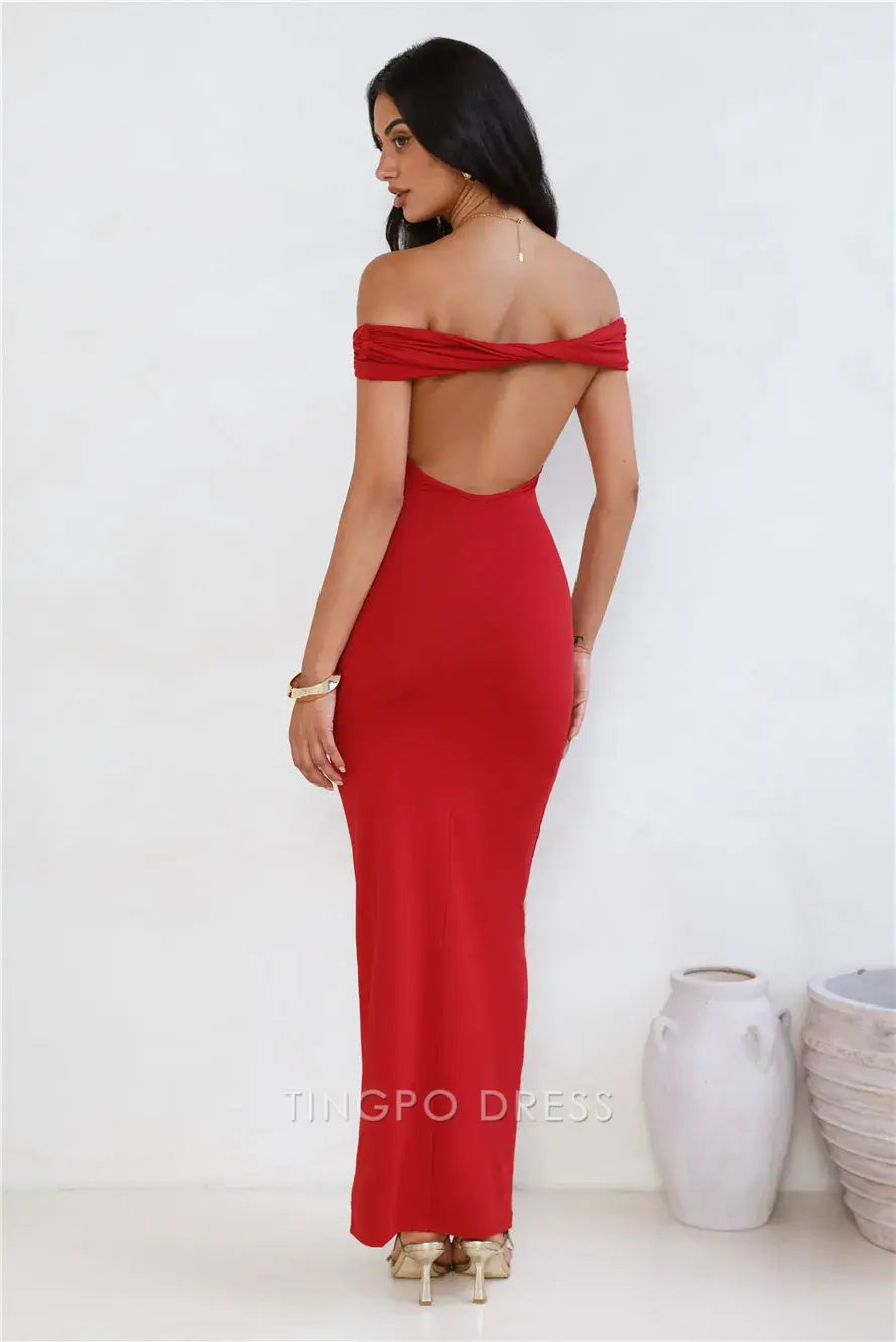 Elevate your special occasion look with Tingpo's off - shoulder maxi dress. Featuring an alluring open - back design, it hugs your curves beautifully while ensuring comfort. Perfect for evening events, parties,prom, or formal gatherings, this dress combines elegance and trendiness effortlessly.