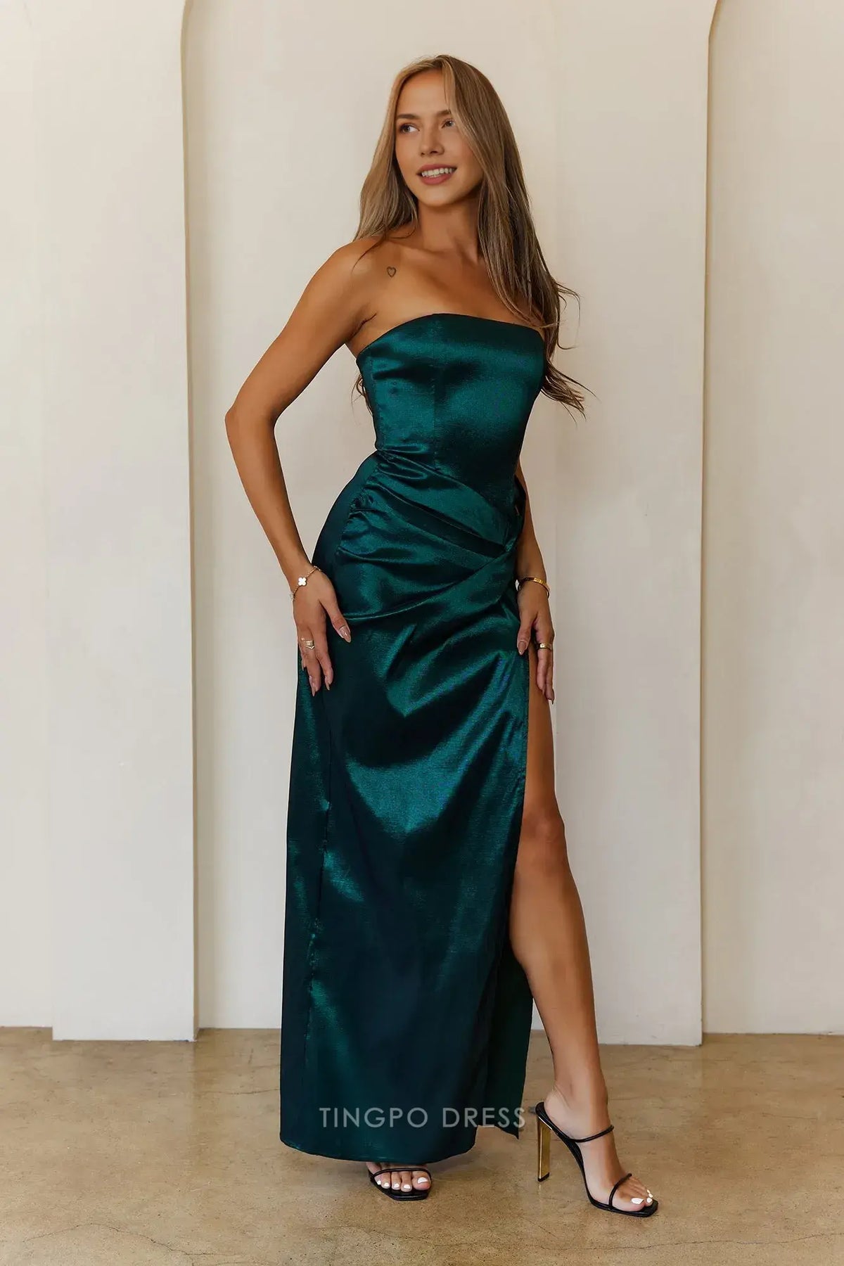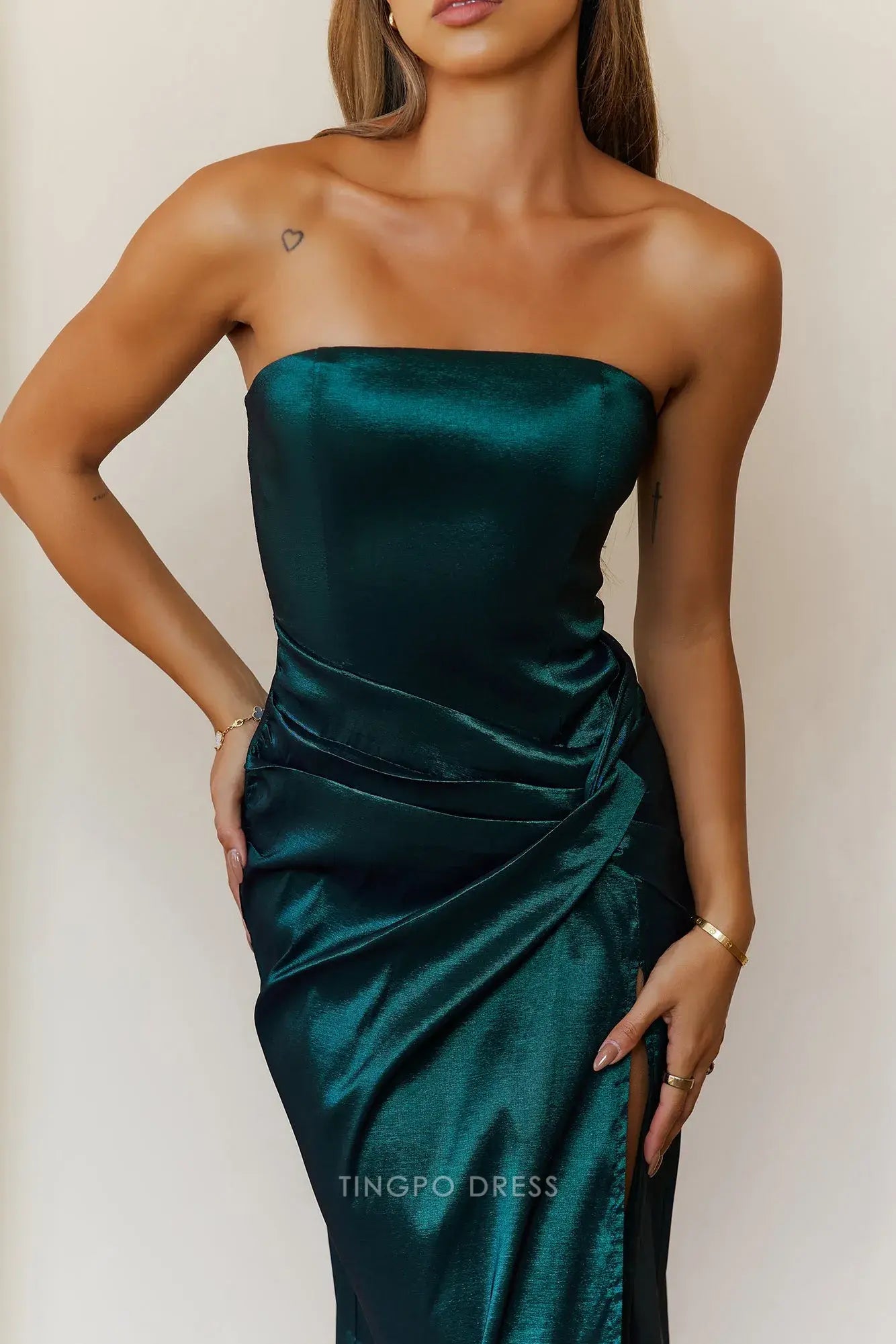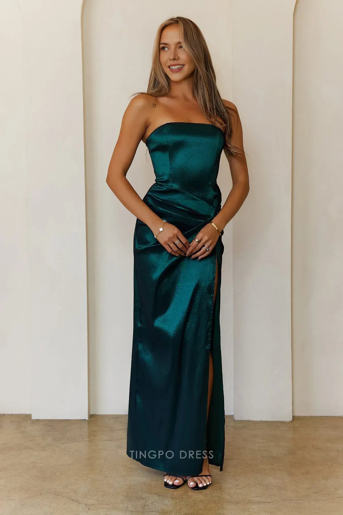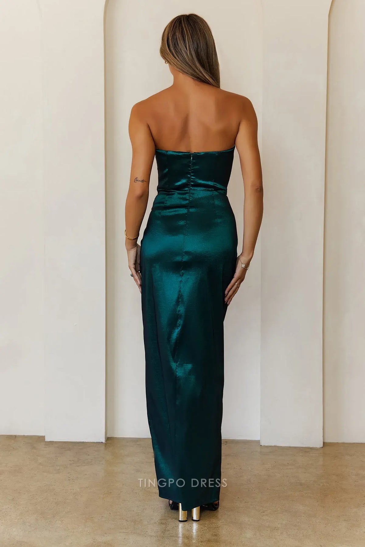 Elevate your formal look with Tingpo's strapless satin maxi dress. It features a sleek strapless design, a figure - hugging fit, and a stylish side slit for added allure. Available in teal and burgundy, the lustrous satin fabric ensures you shine at weddings, galas,prom, or any special event.