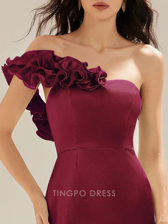 Elegant One - Shoulder Ruffled Mermaid Ankle-Length Maxi Dress Prom Dress - Burgundy / US 2 / UK 6 / EU 32