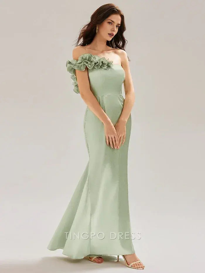 Elegant One - Shoulder Ruffled Mermaid Ankle-Length Maxi Dress Prom Dress