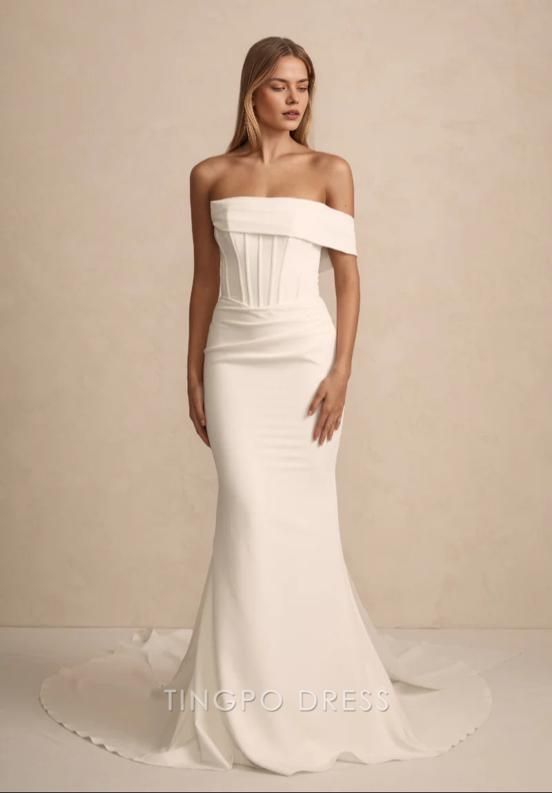 Step into elegance with Tingpo's off - shoulder corset mermaid maxi dress. The off - shoulder design highlights your neckline and shoulders beautifully, while the corset detail enhances the silhouette. The mermaid maxi silhouette with a train creates a stunning and graceful appearance, perfect for weddings or special occasions.
