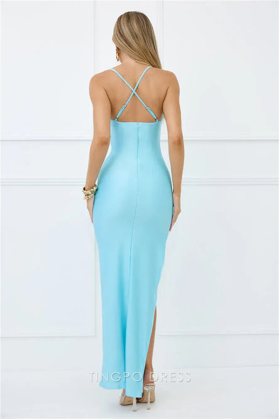 Elegant Spaghetti Straps Cutout Front Cross Back Maxi Dress Prom Dress