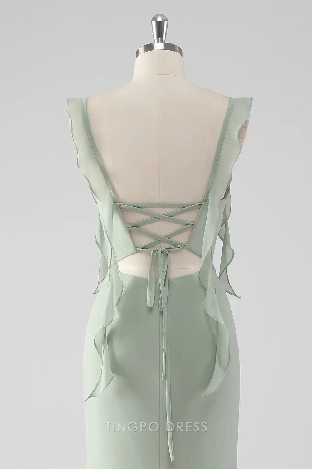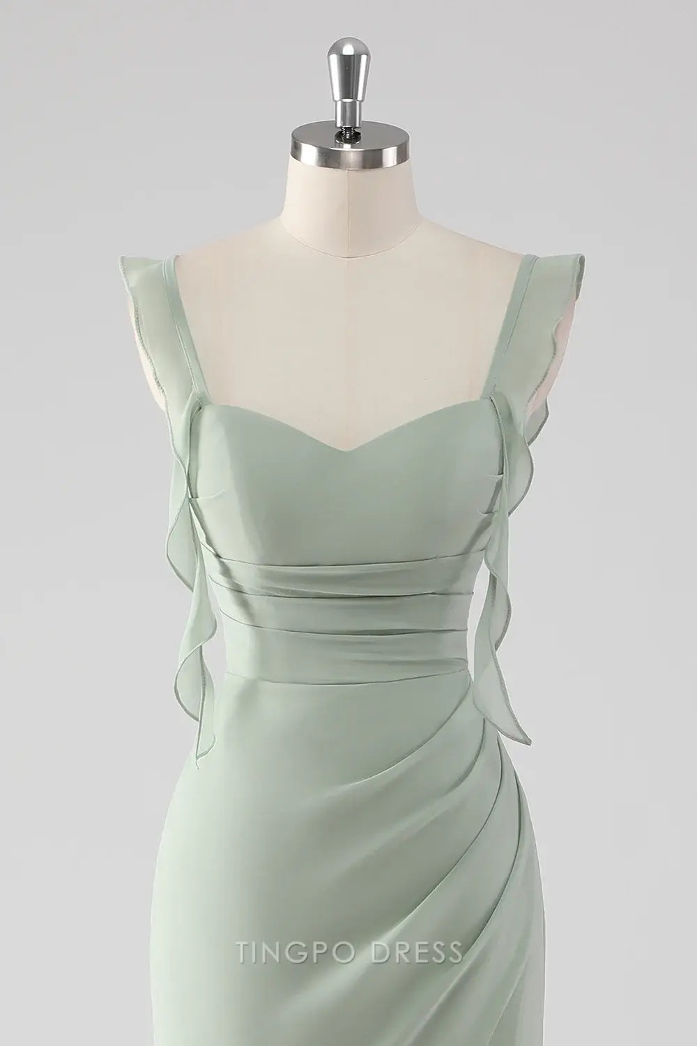 Sweetheart Neck Ruffle Strap Side Slit Mermaid prom dress: Suitable for: proms, formal dinners, black-tie weddings, and upscale parties.