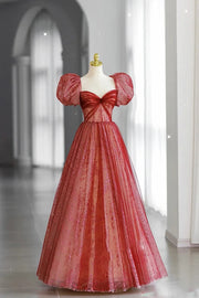 Wholesale Sweetheart Neck Red A Line Tulle Formal Evening Dress Long Prom Dress - US 2 / UK 6 / EU 32