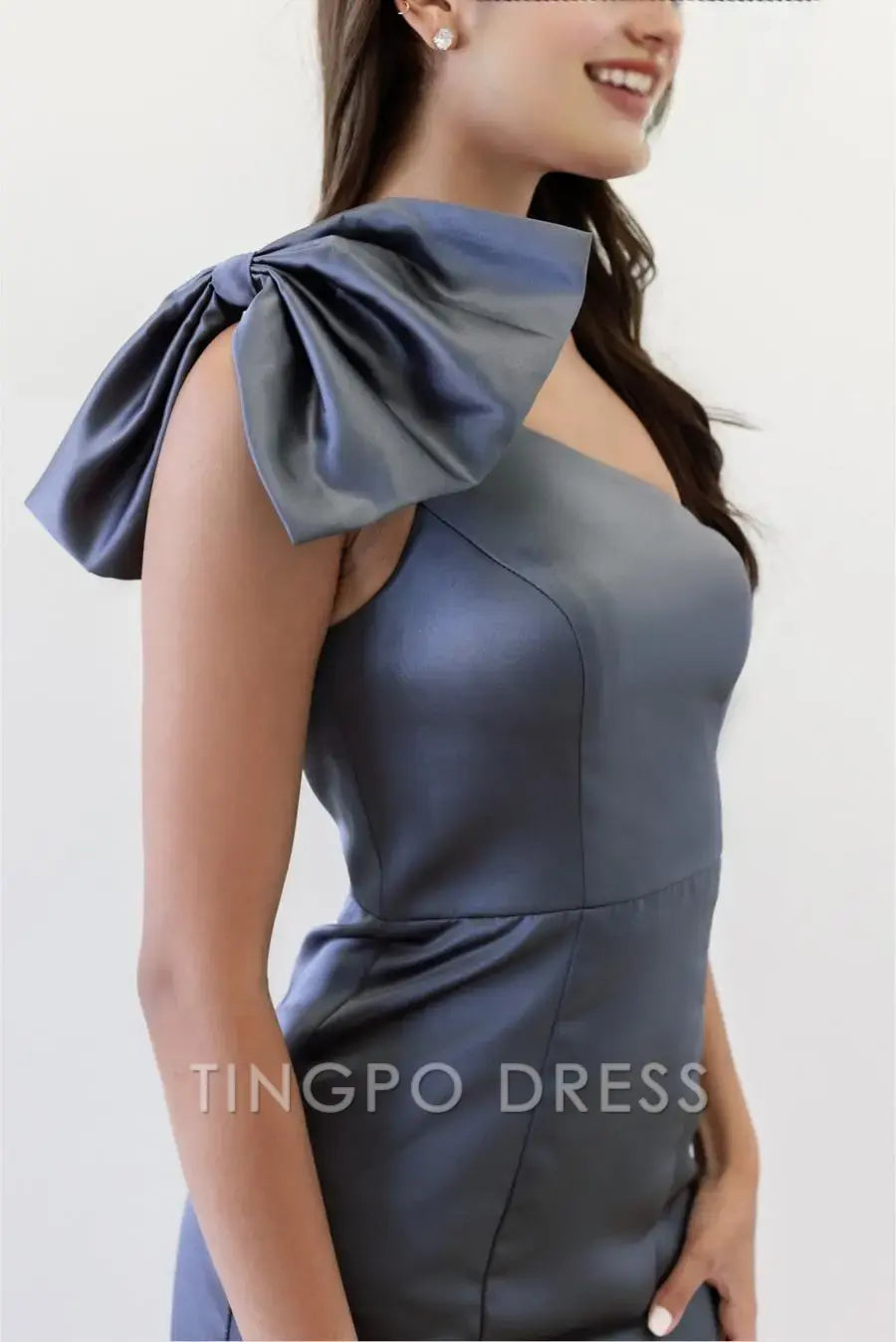 TingPo Wholesale Elegant Slanted shoulder butterfly condensation back tight zipper straight tube skirt and floor mop skirt formal women's dress