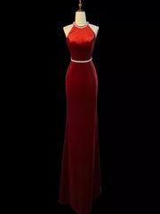TingPo Wholesale Mermaid Halter Burgundy Long Velvet Prom Dresses formal wear dresses - US 2 / UK 6 / EU 32
