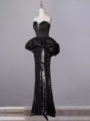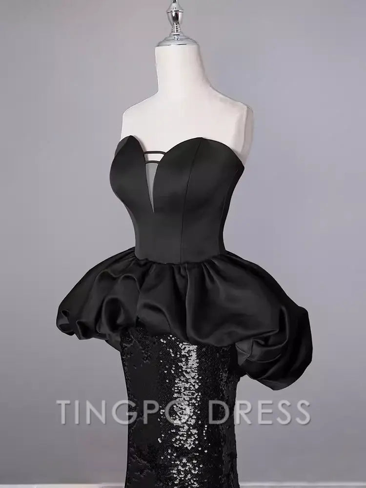 TingPo Wholesale Mermaid Sweetheart Long Black Sequin Prom Dresses formal wear dresses