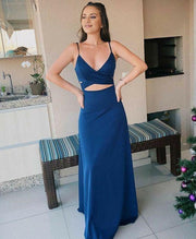 TingPo Wholesale Sexy Sheath Navy Blue Prom Gown Long Straps Prom Dresses formal wear dresses