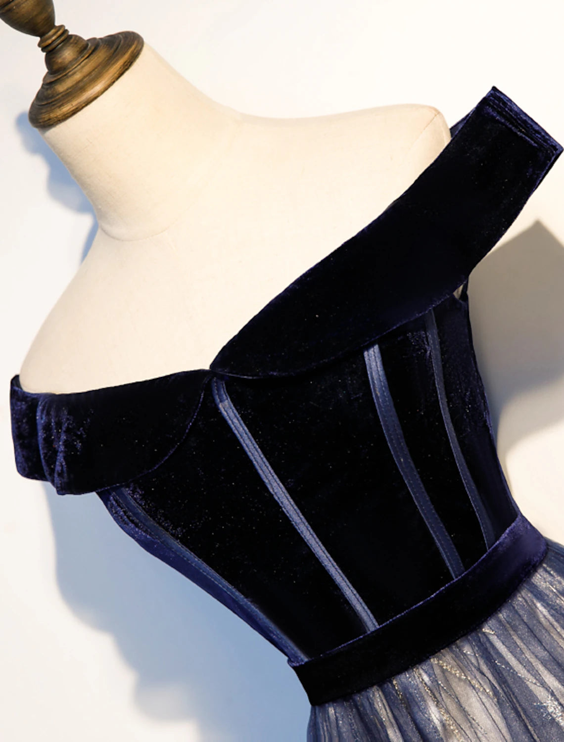 Wholesale A-Line Elegant Floral Prom Formal Evening Dress Off Shoulder Short Sleeve Sweep / Brush Train Tulle with Pleats Pattern / Print - US 2 / UK 6 / EU 32