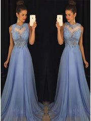 Wholesale A-Line Empire Prom Formal Evening Dress Jewel Neck Sleeveless Sweep / Brush Train Chiffon with Beading Appliques - US 2 / UK 6 / EU 32