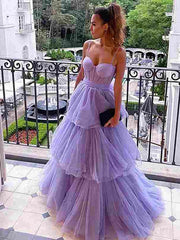 Wholesale A-Line/Princess Tulle Layers Spaghetti Straps Sleeveless Floor-Length Dresses - US 2 / UK 6 / EU 32