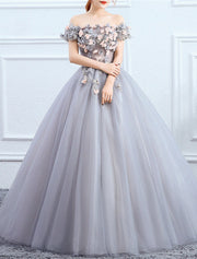Wholesale Ball Gown Quinceanera Dresses Princess Dress Performance Sweet 16 Floor Length Short Sleeve Off Shoulder Polyester with Appliques - Light Grey / US 2 / UK 6 / EU 32