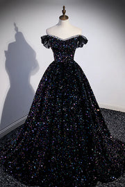 Wholesale Black Off the Shoulder Beaded Long Formal Dress Black Shiny Sequins Evening Dress - US 2 / UK 6 / EU 32
