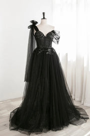 Wholesale Black Tulle Sequins Long Prom Dress Black One Shoulder Evening Dress - US 2 / UK 6 / EU 32