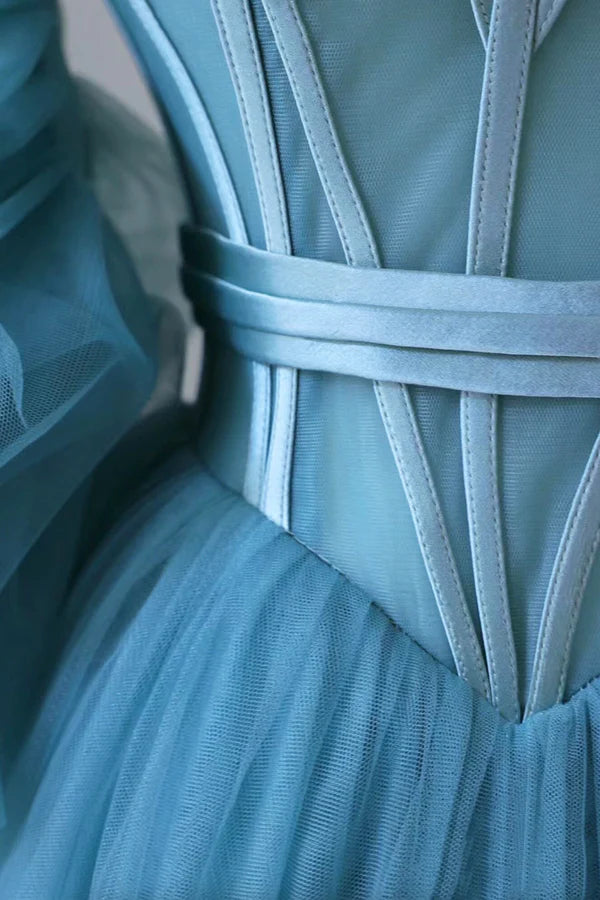 Wholesale Blue Tulle Long Spaghetti Strap Prom Dress and Corset Detachable off Shoulder Party Dress - US 2 / UK 6 / EU 32