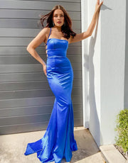 Wholesale Bodycon Long Spaghetti Straps Backless Blue Dress Prom Dress prom dress in store