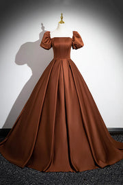 Wholesale Brown Satin Long A-Line Prom Dress Off the Shoulder Evening Party Dress - US 2 / UK 6 / EU 32