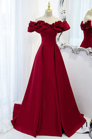 Wholesale Burgundy Satin Long Prom Dress A-Line Off Shoulder Evening Party Dress - US 2 / UK 6 / EU 32