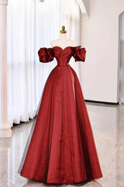 Wholesale Burgundy Satin Tulle Long Prom Dress Off the Shoulder Evening Party Dress