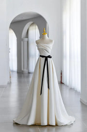 Wholesale Champagne Satin Long A-Line Prom Dress Strapless Formal Evening Dress - US 2 / UK 6 / EU 32