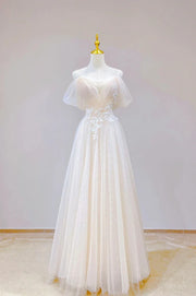 Wholesale Champagne Tulle Long Prom Dress with Lace Off the Shoulder Evening Dress - US 2 / UK 6 / EU 32