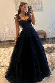 Wholesale Dark Navy A-Line Tie Straps Zipper Back Long Tulle Prom Dress prom dresses shops