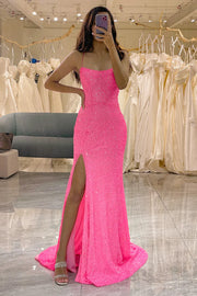 Wholesale Glitter Pink Spaghetti Straps Mermaid Long Prom Dress With Slit prom dresses shops - US 2 / UK 6 / EU 32