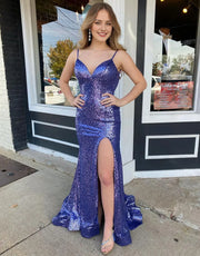 Wholesale Glitter Spaghetti Straps Backless Prom Dress With Split prom dress in store
