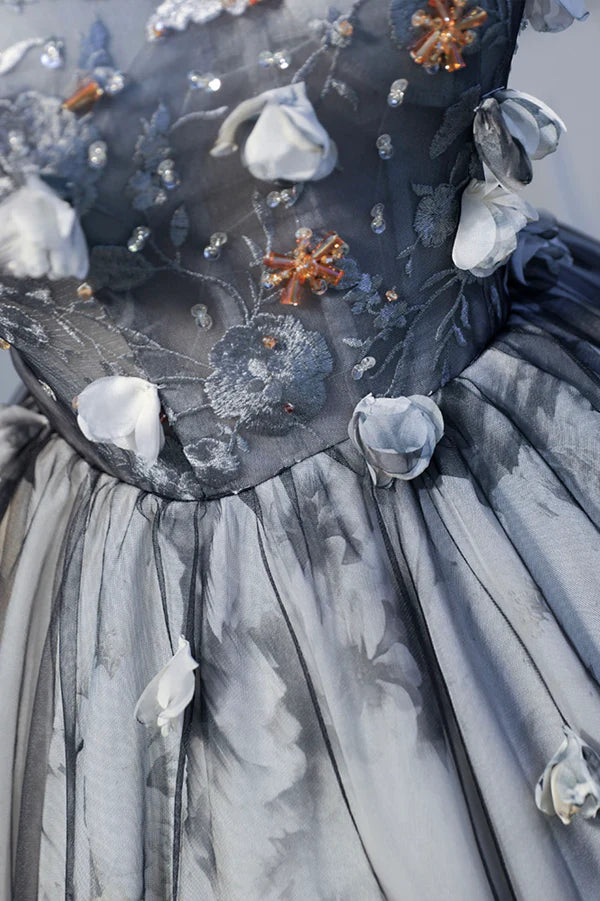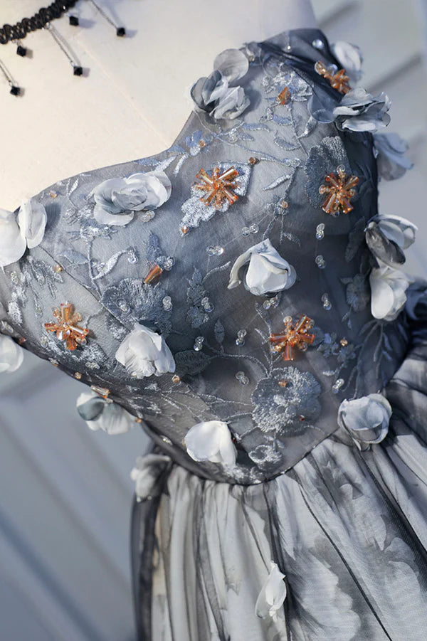 Wholesale Gray Lace Strapless Short Prom Dress A-Line Sweetheart Neckline Party Dress
